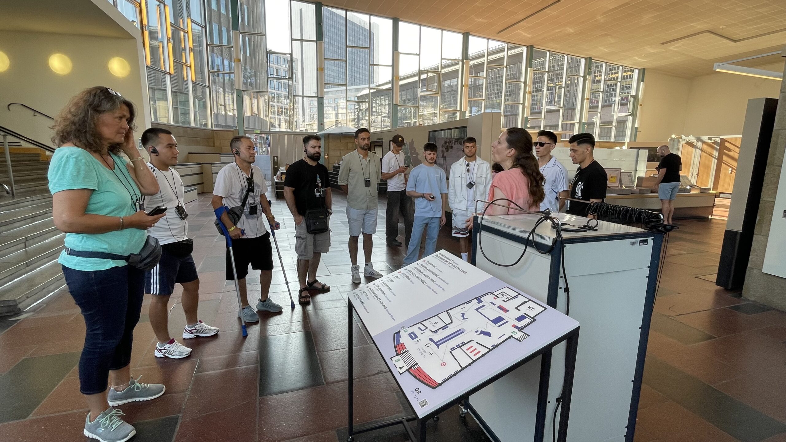 Bei einem Besuch des „Tränenpalasts“ am ehemaligen Grenzübergang Friedrichstraße wurde der 10-köpfigen Gruppe klar, was die deutsche Teilung für die Menschen bedeutete. Wie es zum Aufstieg Adolf Hitlers, zum 2. Weltkrieg kommen konnte, schaute sich die Gruppe in der „Topographie des Terrors“ an. Eine Führung in einfacher Sprache am Denkmal für die ermordeten Juden Europas regte zur dialogischen Auseinandersetzung an.