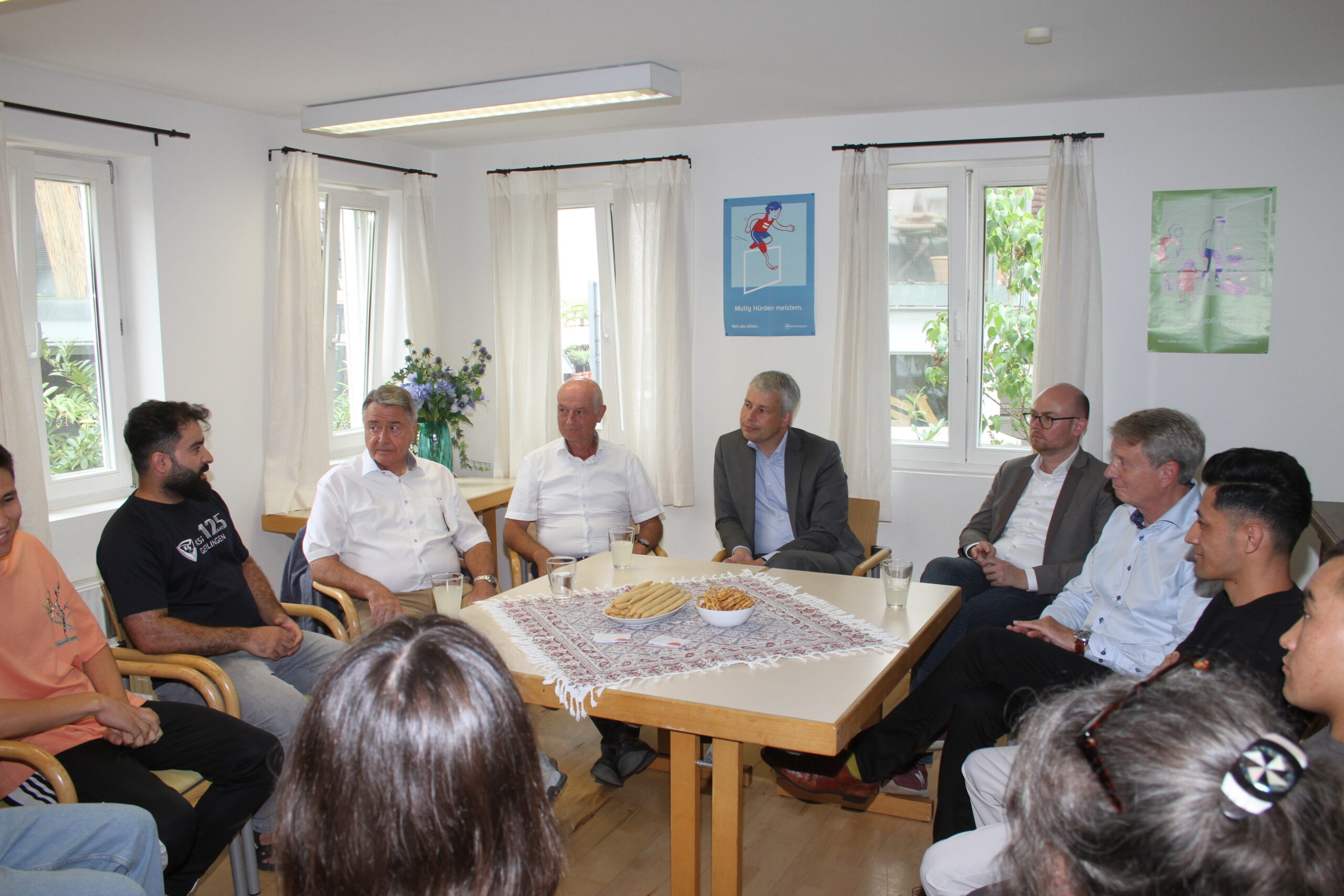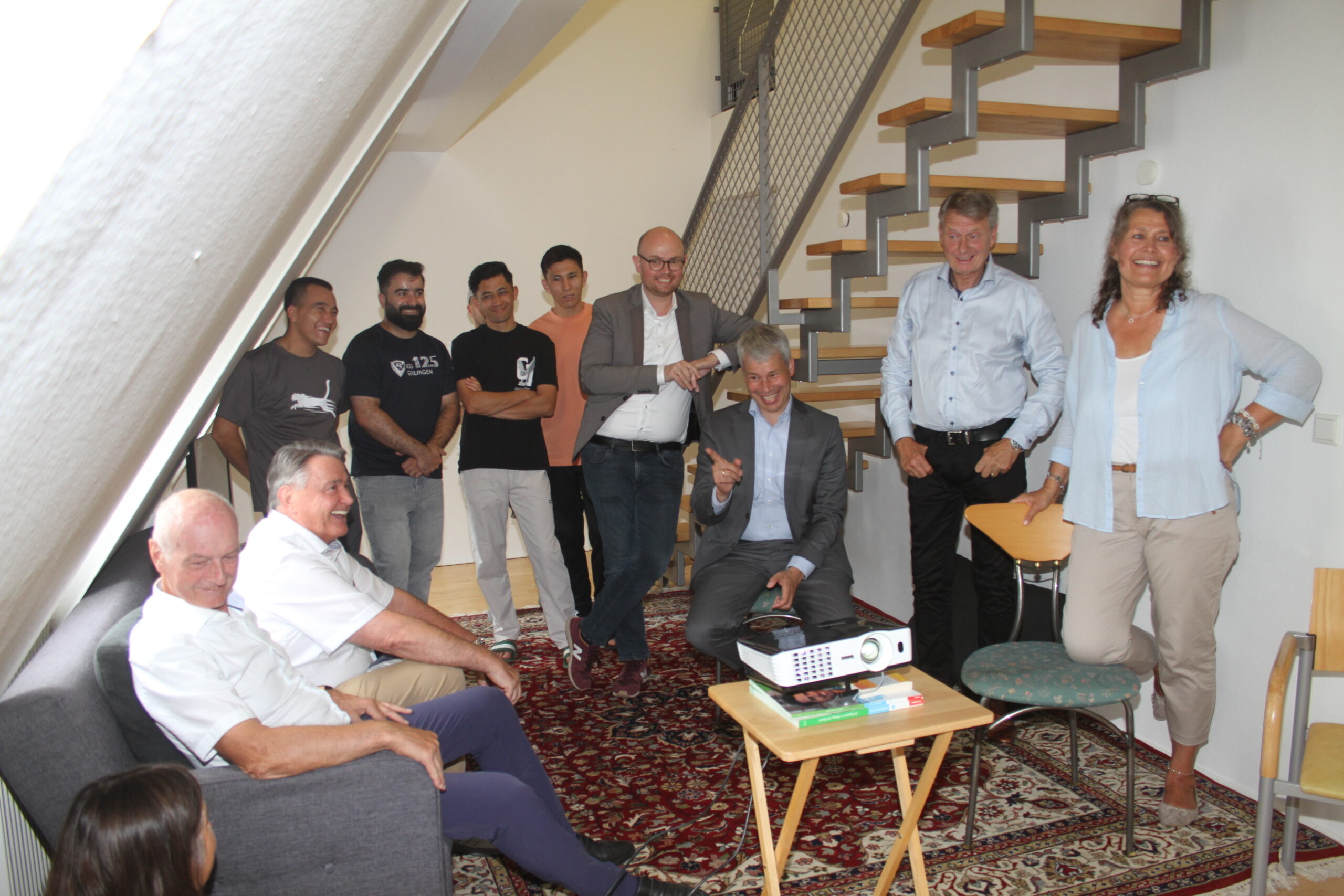 Gleich mehrere Politiker informierten sich über das Wohnprojekt aussichtsreich. Bereits am 03.09. kamen MdB Steffen Bilger und Vertreter der Gerlinger CDU zu einem Gespräch. Dabei kam auch die zunehmend negative Stimmung gegenüber Flüchtlingen zur Sprache. „Gewalttäter, wie der Solinger Messerstecher, schaden auch uns“, stellte ein syrischer Bewohner fest, da viele Menschen dann schlecht über Geflüchtete denken würden. Die Besucher zeigten sich beeindruckt von dem ehrenamtlichen Engagement der Betreuerinnen sowie den Berufsplänen der Männer: Anlagenmechaniker, Fliesenleger, Lokführer – „Alles Berufe, die wir dringend brauchen!“