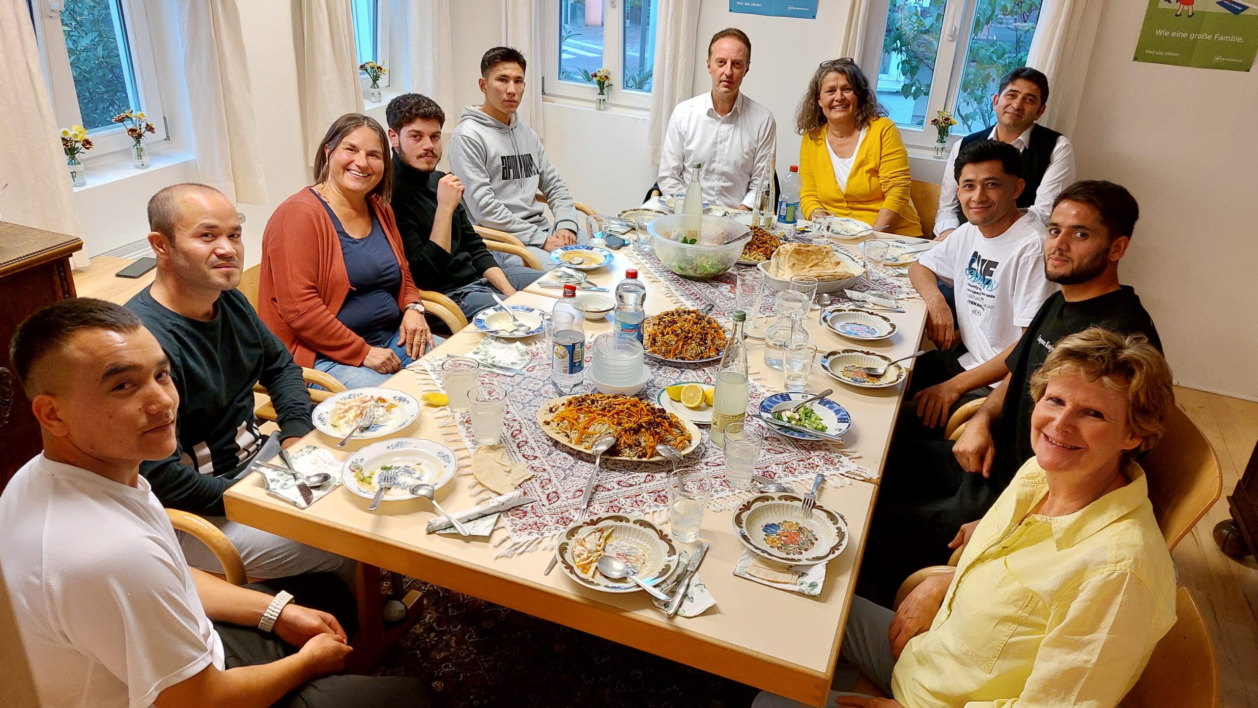 MdB Macit Karaahmetoglu (SPD), auf dessen Einladung die Gruppe bereits den Bundestag besichtigen durfte, kam am 18.09. zum Abendessen. Nach einer arabischen Linsensuppe gab es Kabuli, ein afghanisches Reisgericht, und zum Nachtisch türkisches Künefe mit Mokka sowie viel Zeit zum Reden. Dabei ging es um die verschärften Grenzkontrollen, den Bedarf an Zuwanderung und populistische Rhetorik in der Asyldebatte. Ausgiebig interessierte sich Karaahmetoglu für die Träume der jungen Männer und ermutigte sie dazu, ihre Ziele nicht zu klein zu träumen. Er erzählte von seiner Integration und empfahl neben Filmen auf Deutsch in Vereine zu gehen, um möglichst viel Kontakt zu Deutschen zu bekommen. Auch die Mitgliedschaft in einer Partei stehe allen offen und er warb dafür, sich politisch zu engagieren.