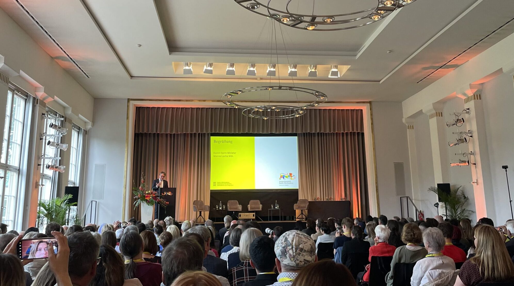 Zum zweiten Mal vergab das Ministerium für Soziales, Gesundheit und Integration am 8. Mai 2025 den Integrationspreis. Und wir waren mit dabei! Im wunderschönen Kursaal Bad Cannstatt trafen sich Vertreter von 236 Initiativen unter dem Motto „Zusammen für Integration“. In einer launigen Rede würdigte Minister Manne Lucha alle Beteiligten, die durch „Mut, Kreativität und die Übernahme von Verantwortung Brücken bauen, Perspektiven schaffen und Chancen ergreifen“.