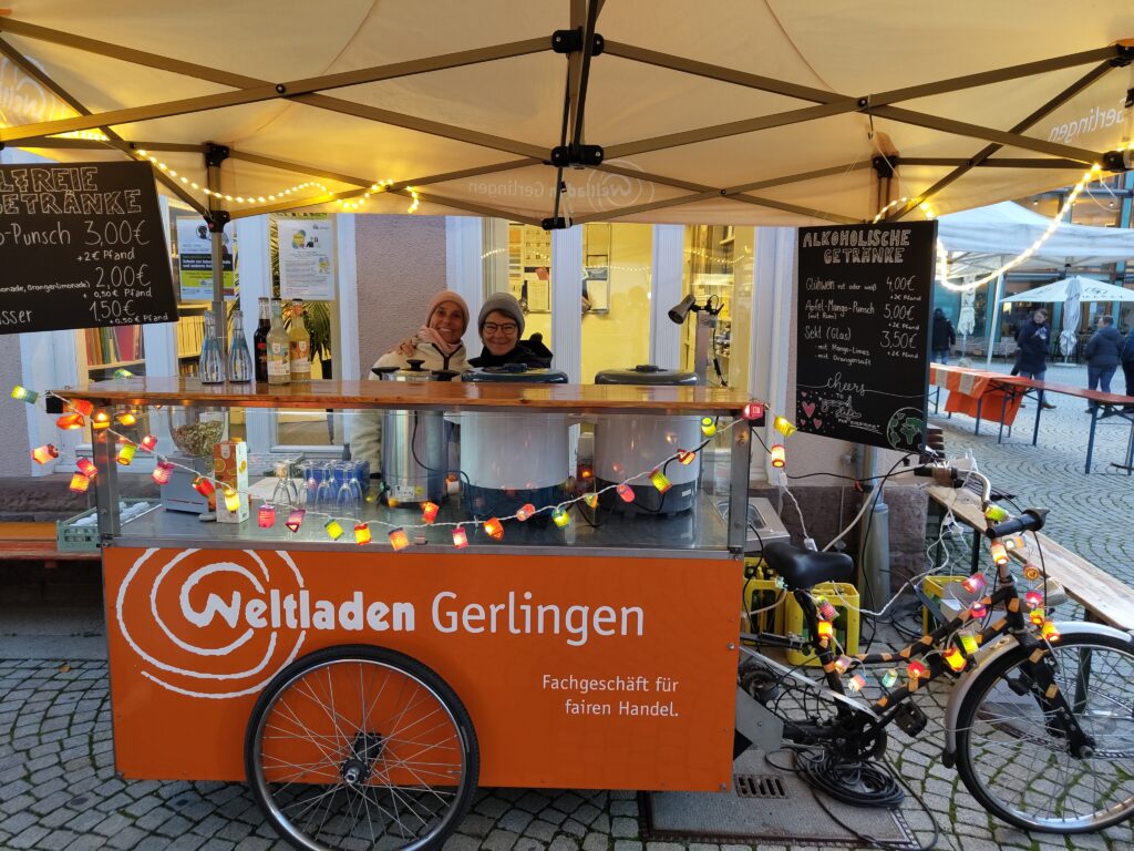 Viel ehrenamtlich geleistete Hilfe kommt den Bewohnern des aussichtsreich-Projekts zugute. Etwas davon zurückgeben, konnten sie bei der langen Einkaufs- und Kulturnacht am Freitag, den 24.Oktober 2025 in Gerlingen, indem die jungen Männer selbst ehrenamtlich tätig wurden. Dort beteiligte sich traditionell der im Ehrenamt geführte Weltladen Gerlingen mit mit Essensständen, verkaufte Glühwein und zeigte in und außerhalb des Ladens ihre Angebote. Zur Unterstützung von Auf- und Abbau war aussichtsreich e.V. angefragt worden, ob vielleicht ein paar der Jungen von aussichtsreich helfen könnten.