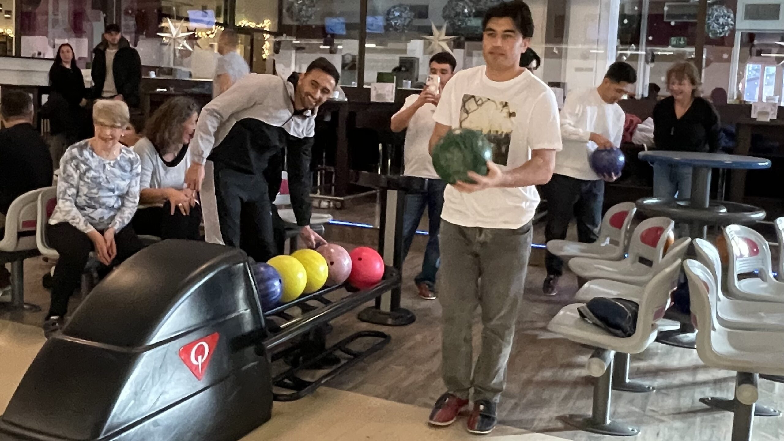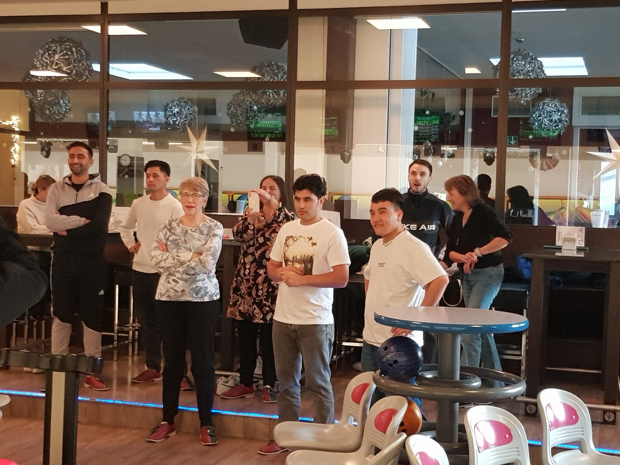Für die meisten war das Spiel auf der Kegelbahn eine ganz neue Erfahrung. Einer der Bewohner, der bereits mit seiner Schulklasse beim Bowling gewesen ist, zeigte den anderen, wie man die Kugel führt und traf direkt mit seinem ersten Wurf alle zehn Pins – Strike! Die anderen waren beeindruckt. Doch mit ein wenig Übung liefen auch die Mitspieler allmählich zur Höchstform auf.